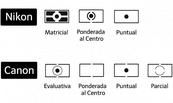 Las cámaras digitales realizan automáticamente ajustes infinitos. Miden la cantidad de luz que contiene una escena con un pequeño dispositivo llamado fotómetro que puede ajustar la exposición de cada elemento de nuestra imagen (ya sea demasiado brillante (sobreexpuesta) u oscura). La cámara te permite especificar cómo se mide la luz usando el llamado modo de medición.